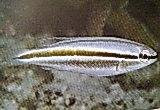 Identification: Bluish back and white belly; creamy yellow mid-lateral stripe and yellowish streak on back. A common but undescribed species.