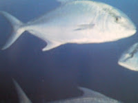 Identification: Silvery; rear dorsal, anal and tail fins tinted yellowish green; usually display 5-7 chevron bars.