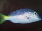 Identification: Silvery to silvery blue or olive-brown, yellow tail and base; diffuse yellow area may extend from pectoral fin to tail base, yellow around upper eye.