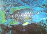 Identification: Dark bluish head and dark gray body with yellow fins. Easily distinguished from most emperors by large size.