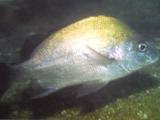 Identification: Silvery with many small golden or brassy spots; often 5 faint darkish bars on side; large adults have 3 or 4 dark blotches along middle of side.