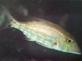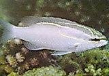 Identification: Shades of gray; 3 white to yellowish curving lines extend from eye to back and base of dorsal fin, dark band between eyes with bluish band above.
