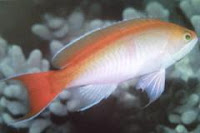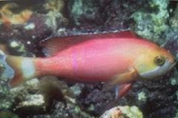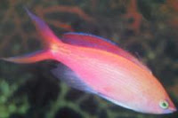 Identification: Male - Red to lavender; fins red with variable violet markings; elongate 3rd dorsal spine. Female - Similar, but have yellowish dorsal and tail fins.